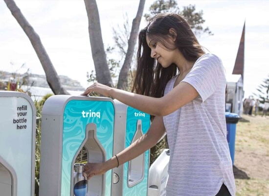 trinq® ist umweltfreundlich. Kein Energieverbrauch im Betrieb, kein Plastikabfall. Der Brunnen mit der kleinen Standfläche hinterlässt auch einen kleinen Footprint.